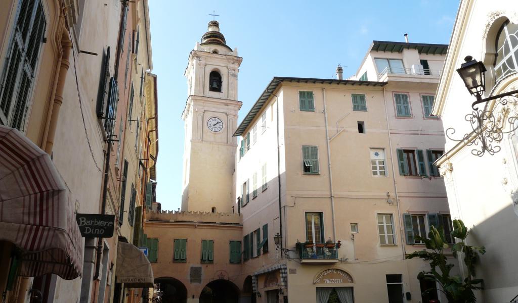 Wallpaper The clock tower at the resort of Bordighera, Italy