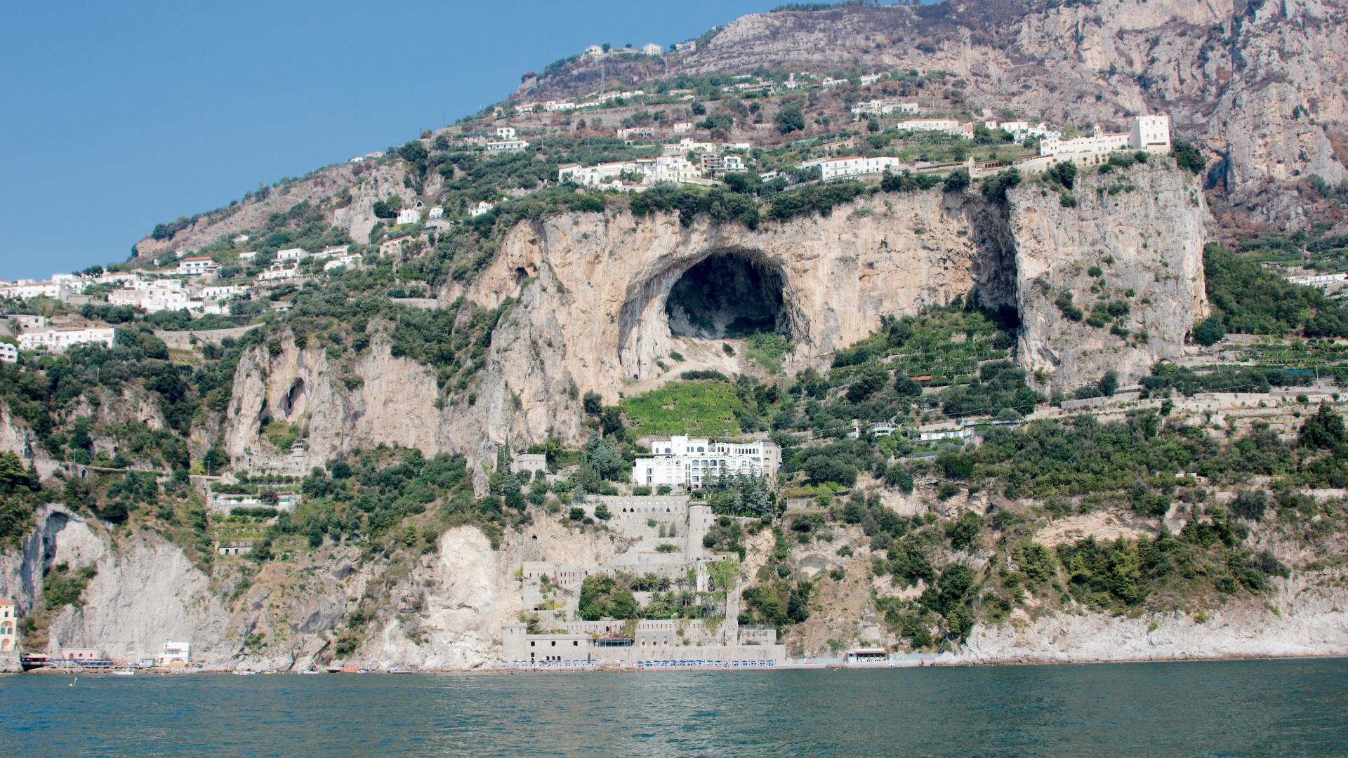 Wallpaper Cave in the mountainside at the resort in Amalfi, Italy