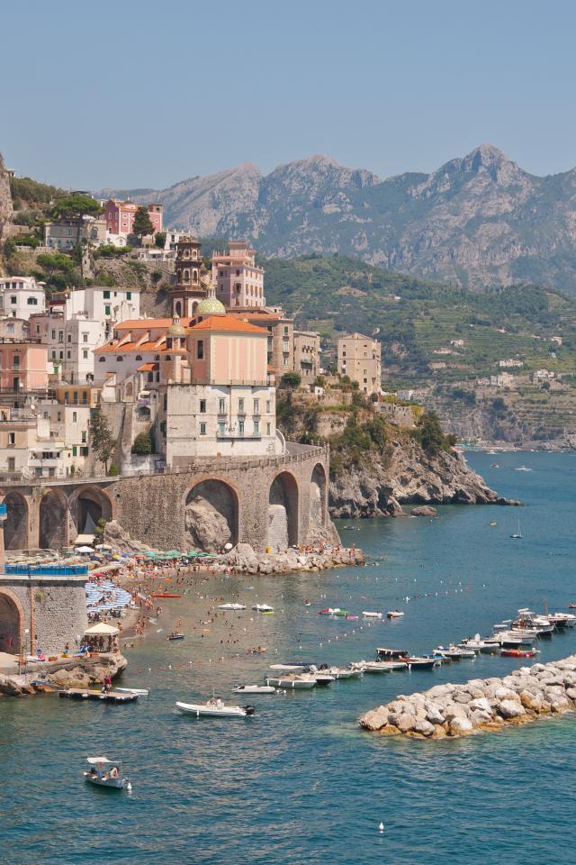 Wallpaper Houses on the waterfront at the resort in Amalfi, Italy