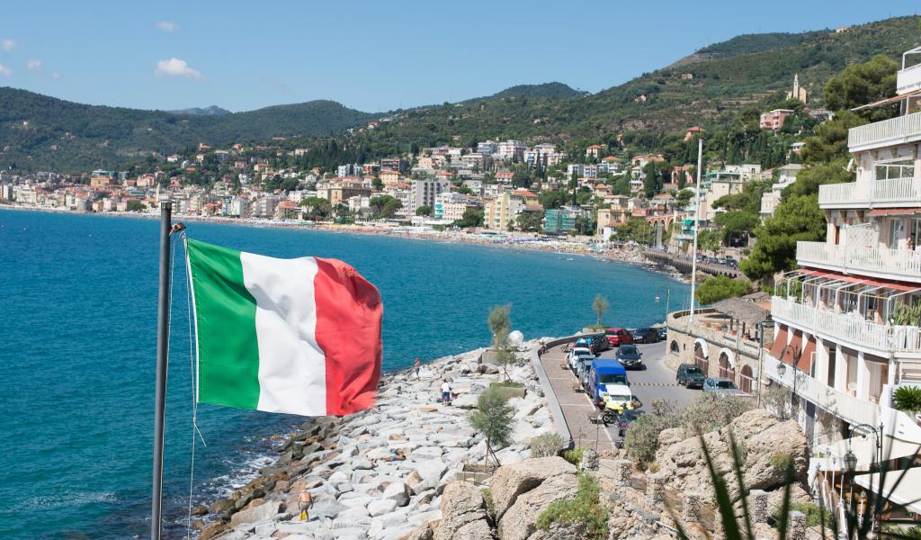 Wallpaper Flag on a background of the beach in Alassio, Italy