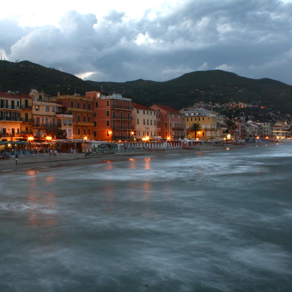 Wallpaper Night lights in the resort of Alassio, Italy