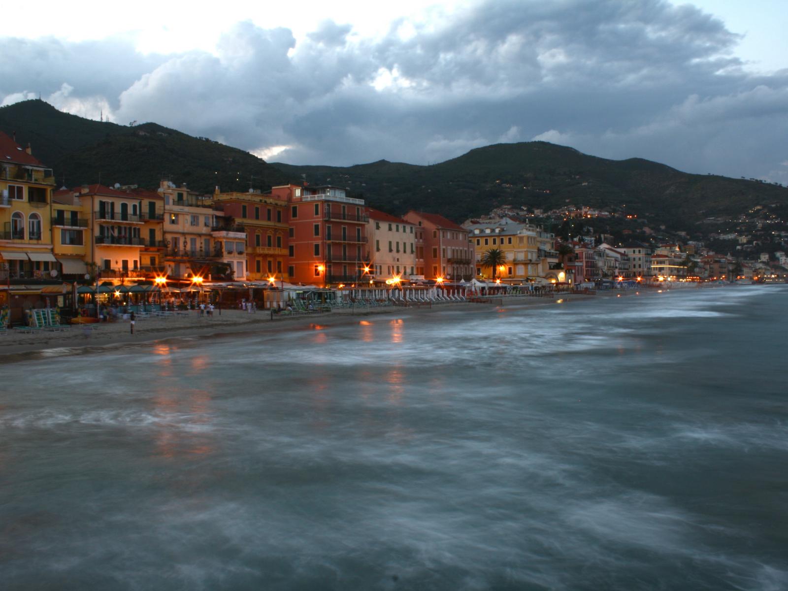 Wallpaper Night lights in the resort of Alassio, Italy
