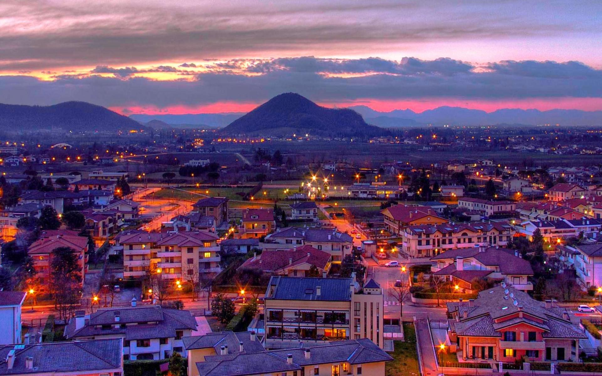 Wallpaper Night lights in the resort of Abano Terme, Italy