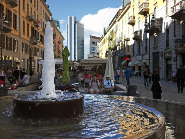 Wallpaper Fountain on the street in Milan, Italy