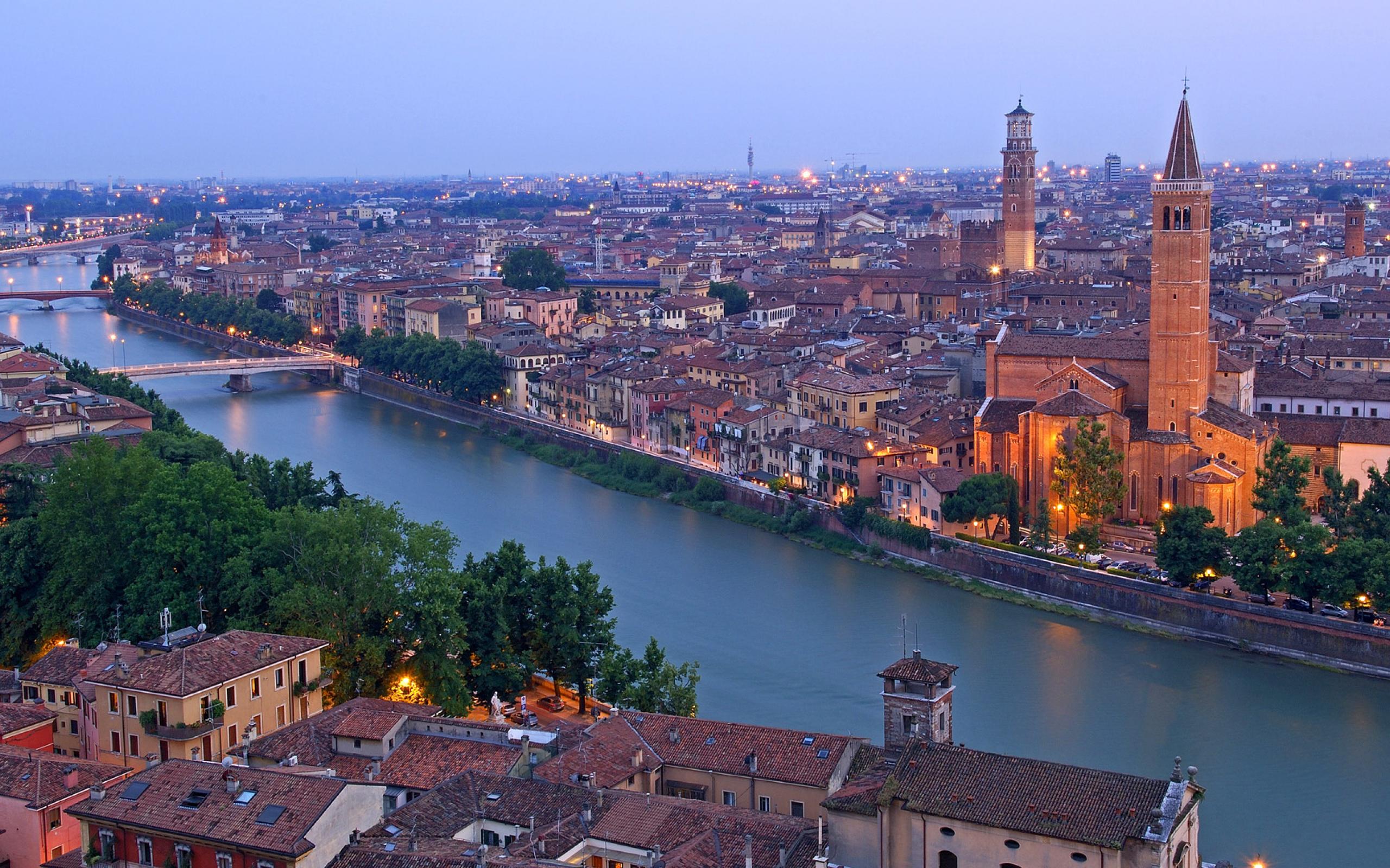 Wallpaper Evening lights in Verona, Italy
