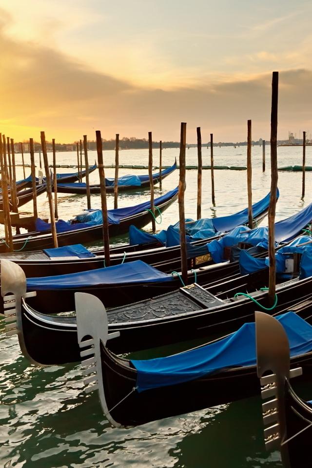 Wallpaper Gondola at sunset in Venice, Italy