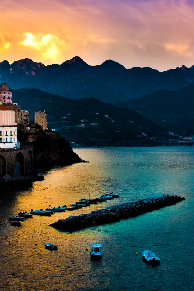 Wallpaper Tyrrhenian Sea and the town of Amalfi, Italy