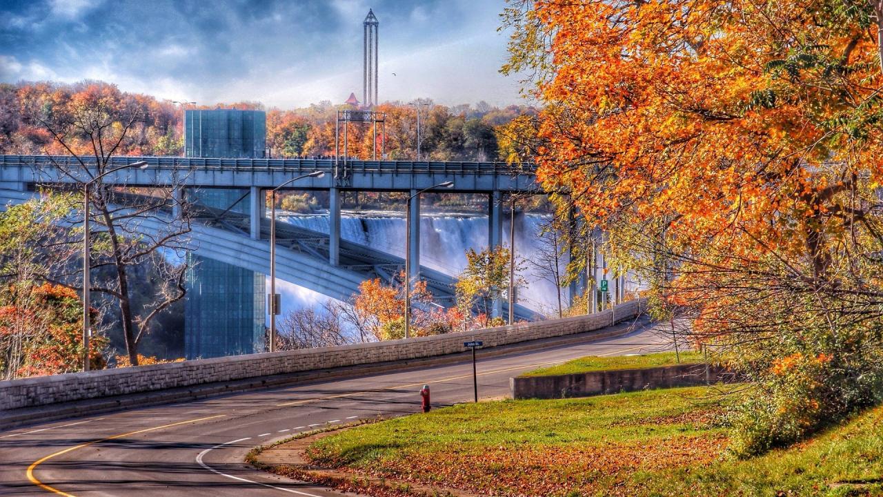 Wallpaper Bridge over a waterfall in Canada