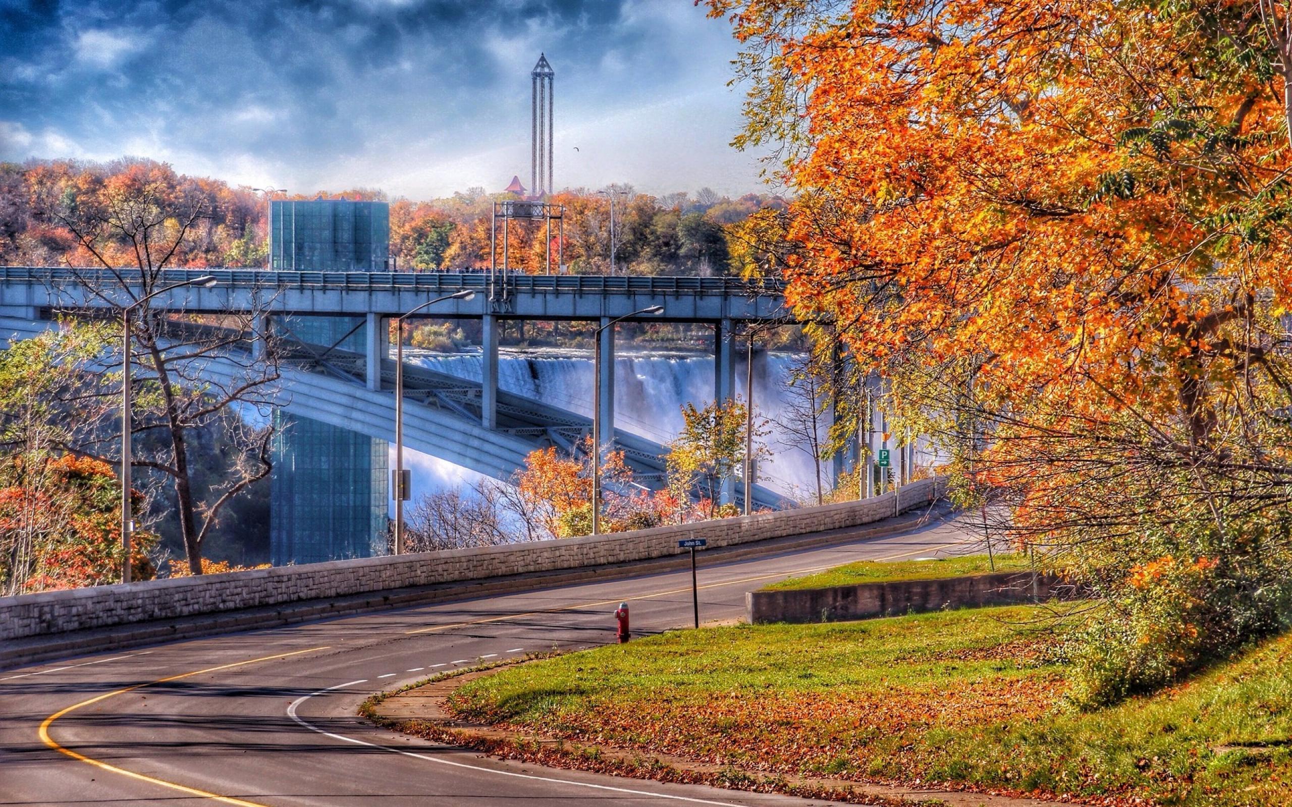 Wallpaper Bridge over a waterfall in Canada