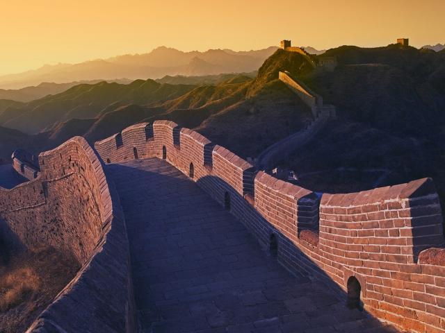 Wallpaper Fragment of the Great Wall of China at sunset