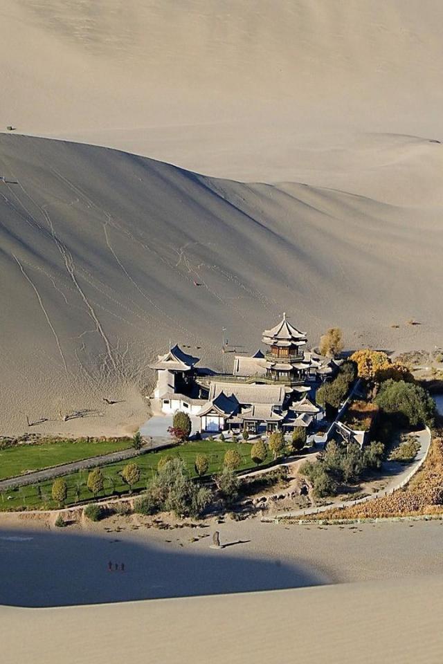 Wallpaper An oasis in the Gobi Desert. China