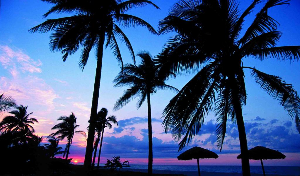 Wallpaper Palm trees at sunset in the resort of Guardalavaca, Cuba