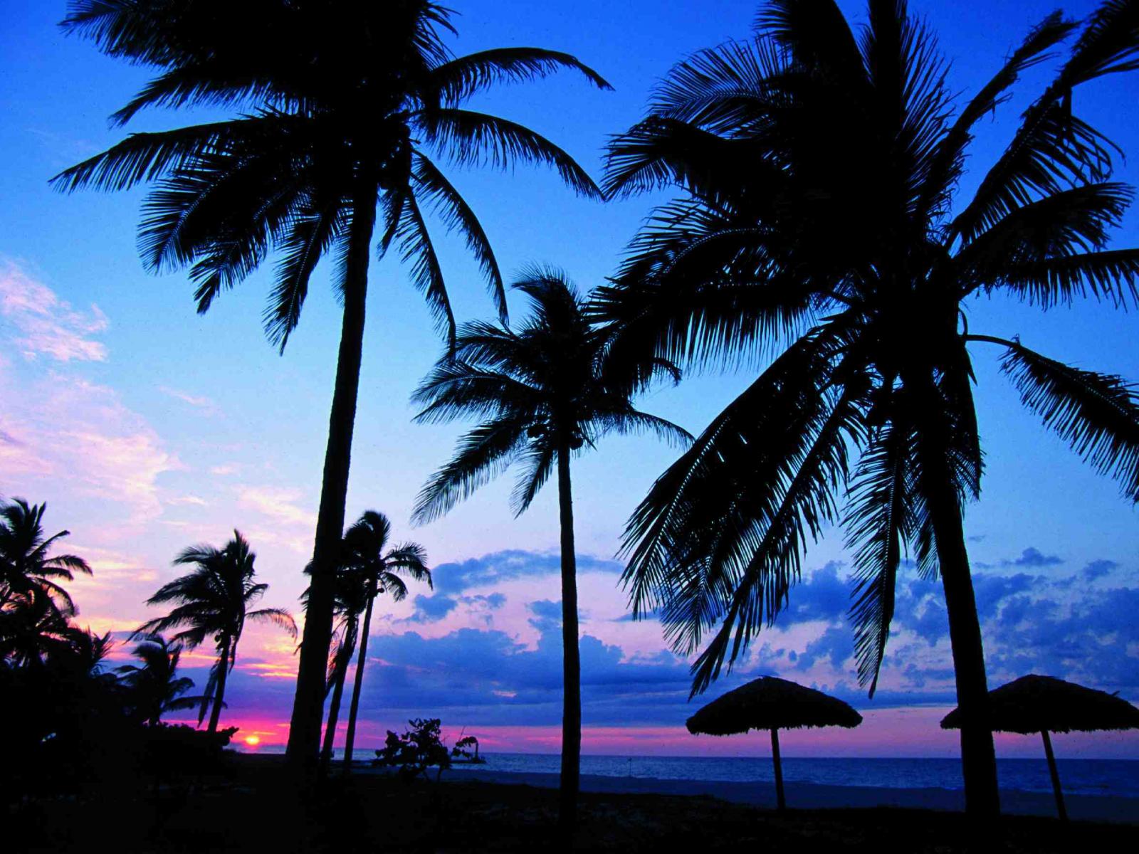 Wallpaper Palm trees at sunset in the resort of Guardalavaca, Cuba