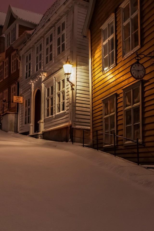 Wallpaper Night Winter Street in Norway