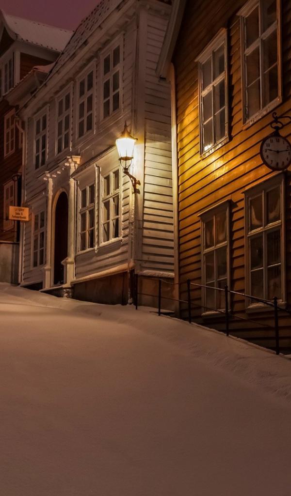 Wallpaper Night Winter Street in Norway