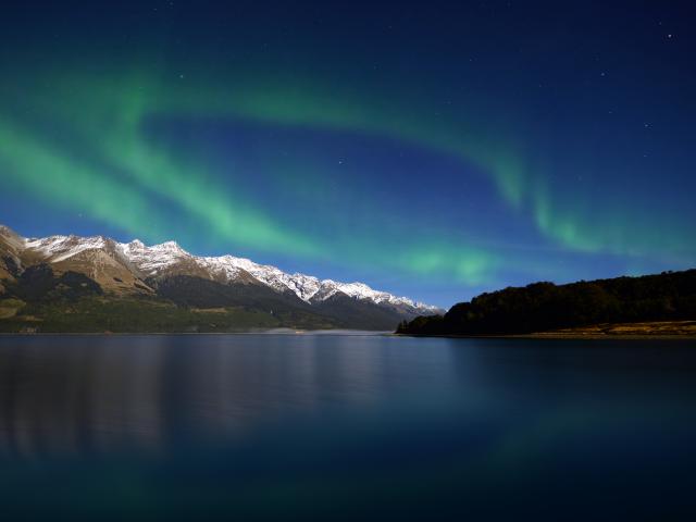 Wallpaper Aurora borealis over Lake Wakatipu, New Zealand