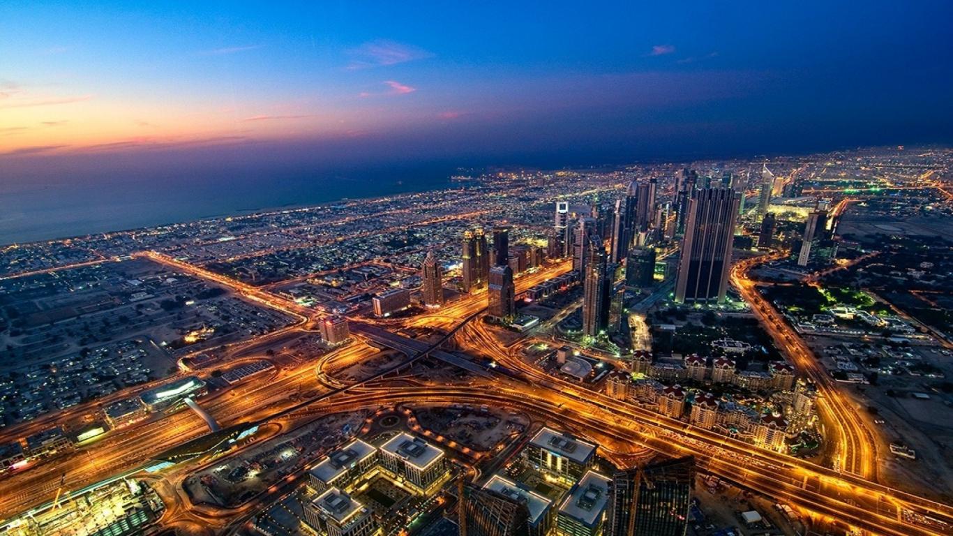 Wallpaper View on Dubai from the window of a skyscraper