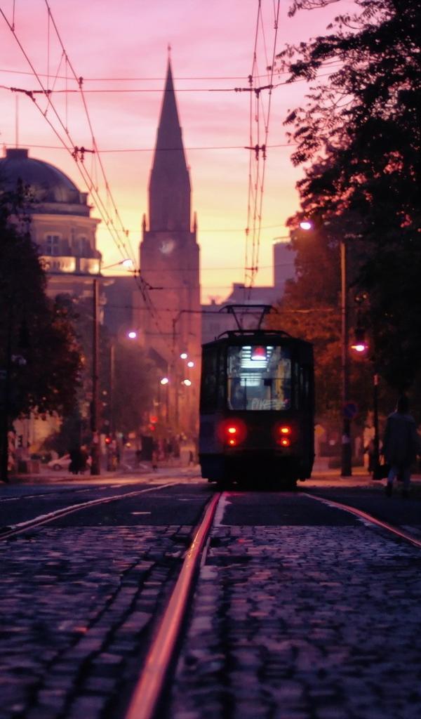 Wallpaper Tram on a city street in Poland