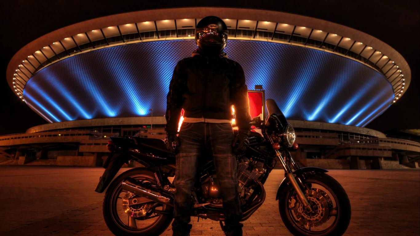 Wallpaper A motorcyclist on a background of a stadium in Katowice
