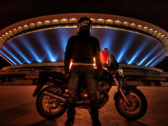 Wallpaper A motorcyclist on a background of a stadium in Katowice