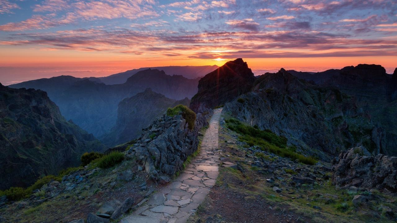 Wallpaper Sunset in the mountains, Portugal
