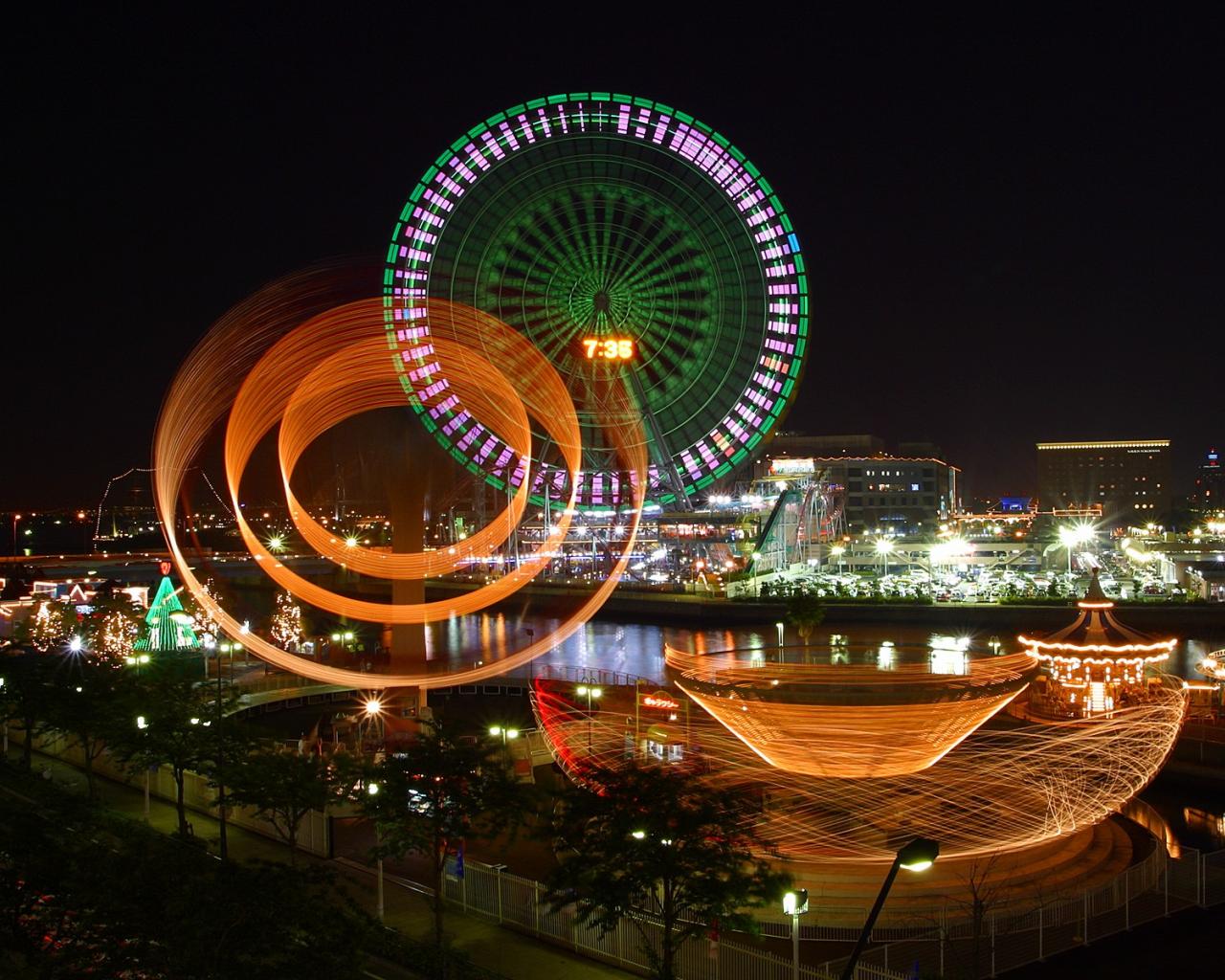 Wallpaper Snow, Trees, Night, Winter night, Lights, Park