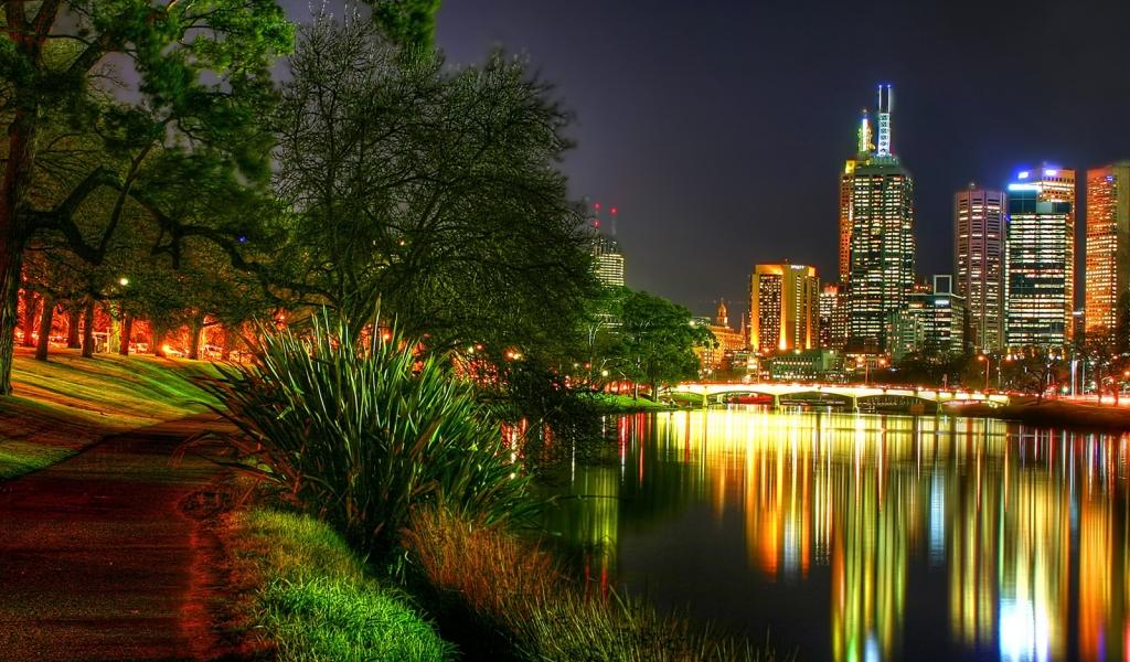 Wallpaper Night Lights advertising in the city, HDR Photos
