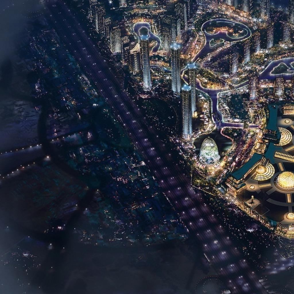 Wallpaper City at night top view