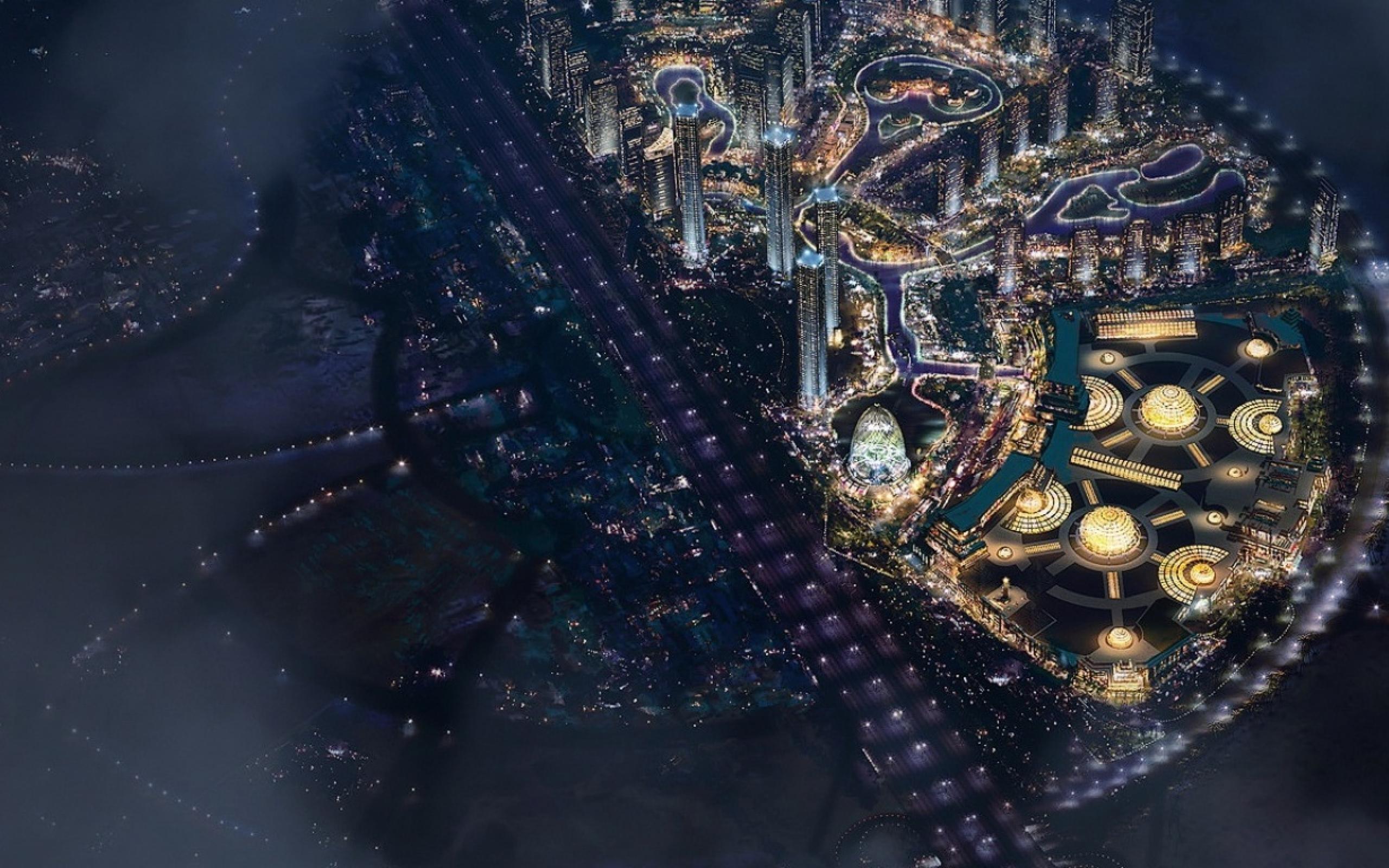 Wallpaper City at night top view