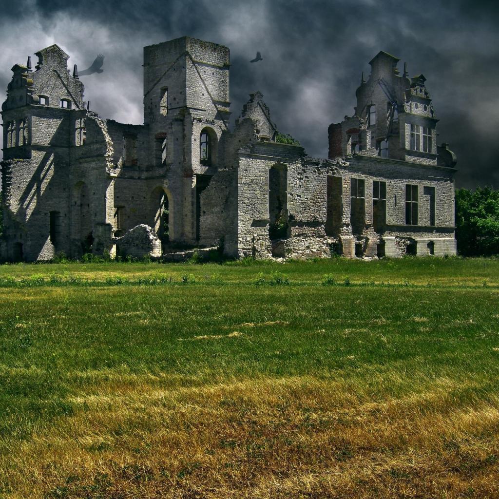 Wallpaper Crows fly over the ruins of a castle in Scotland