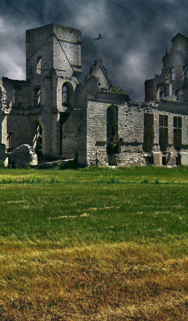 Wallpaper Crows fly over the ruins of a castle in Scotland