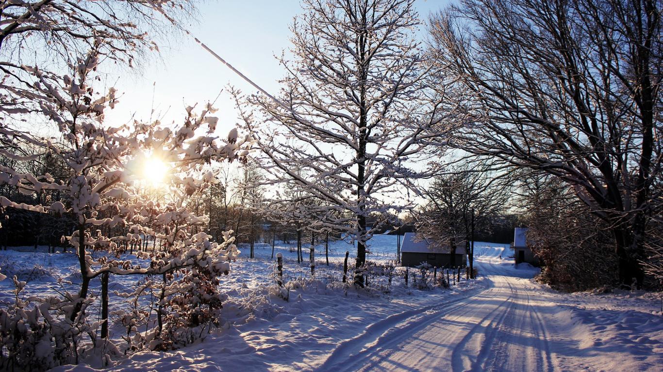 Wallpaper Snow, Road, Winter night, Sun, Moon, Stars, Winter road