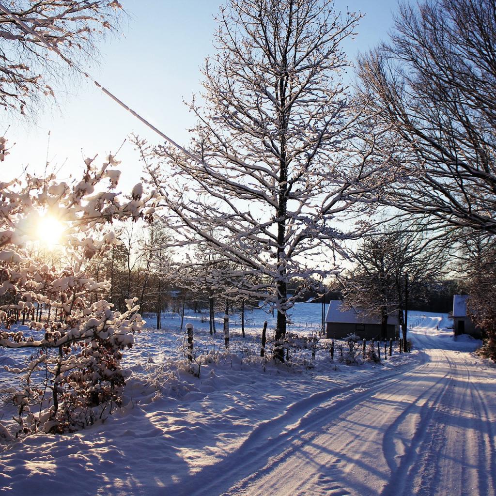 Wallpaper Snow, Road, Winter night, Sun, Moon, Stars, Winter road