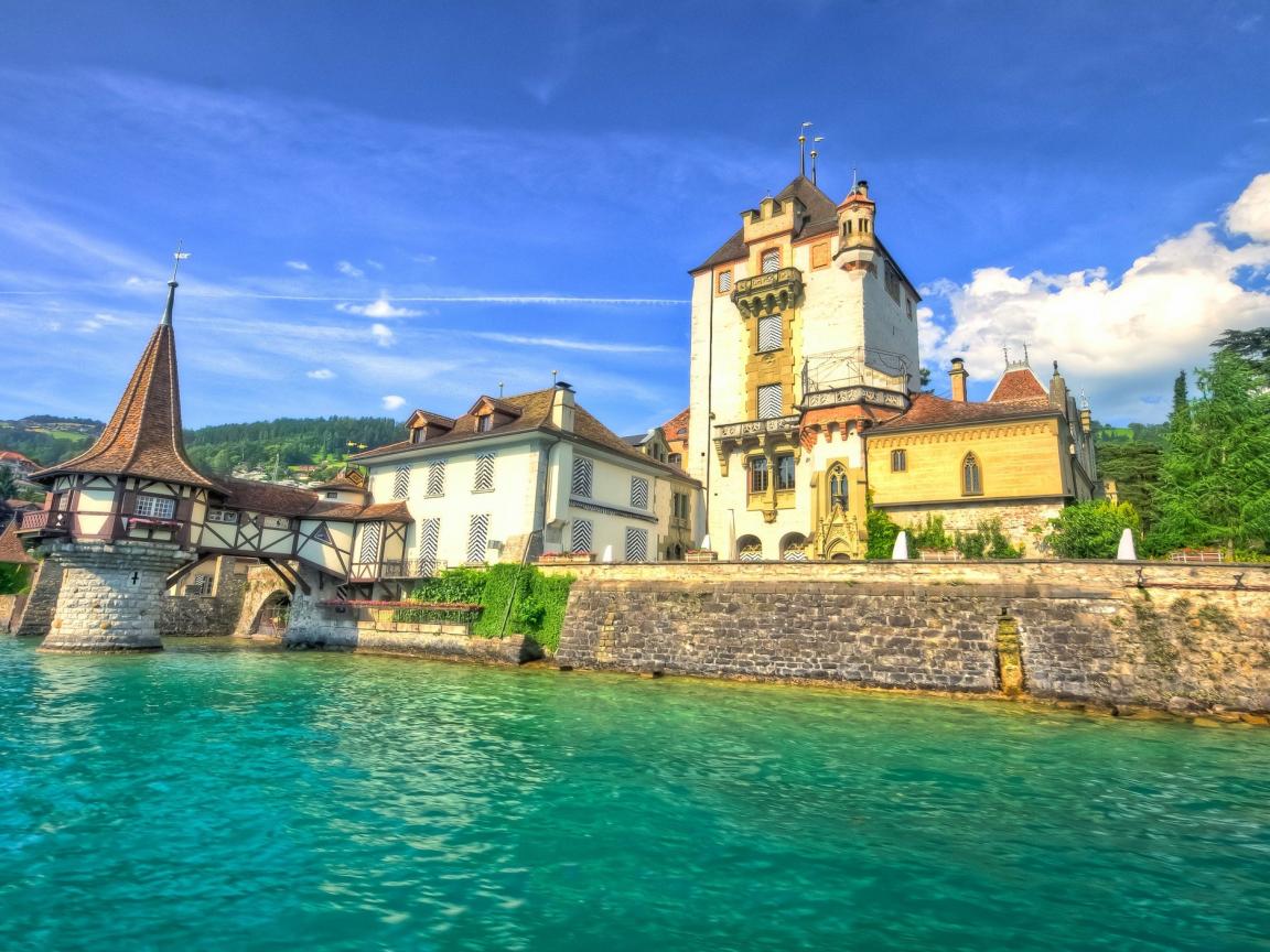 Wallpaper Old house on the waterfront, Switzerland