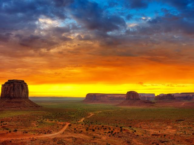 Wallpaper Bright sunset in Monument Valley