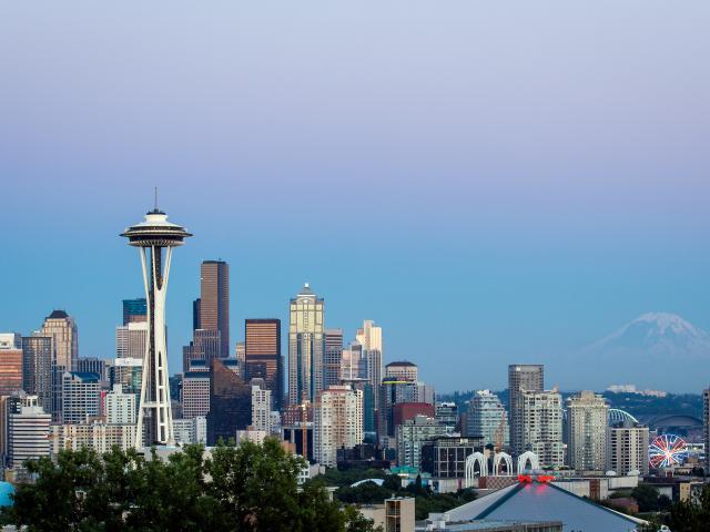 Wallpaper Seattle and stratovolcano Rainier, USA