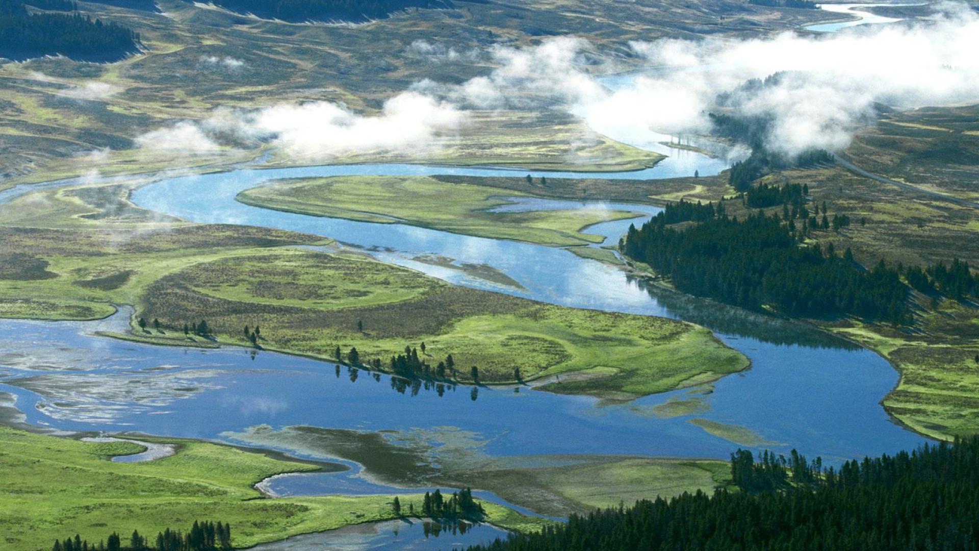 Wallpaper Waterfall in Yellowstone National Park, Wyoming, USA