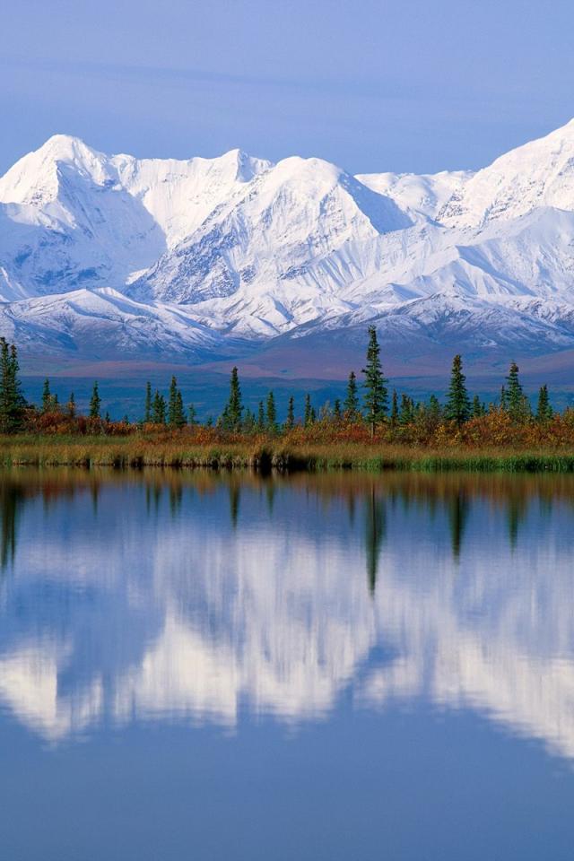 Wallpaper Wooden fence on the backdrop of majestic mountains