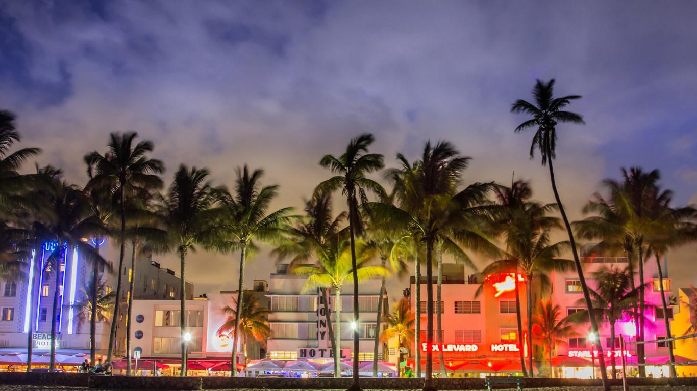 Wallpaper Palms on the evening street in Miami