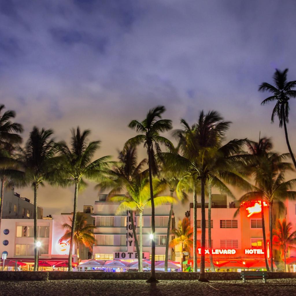 Wallpaper Palms on the evening street in Miami