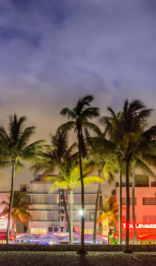 Wallpaper Palms on the evening street in Miami