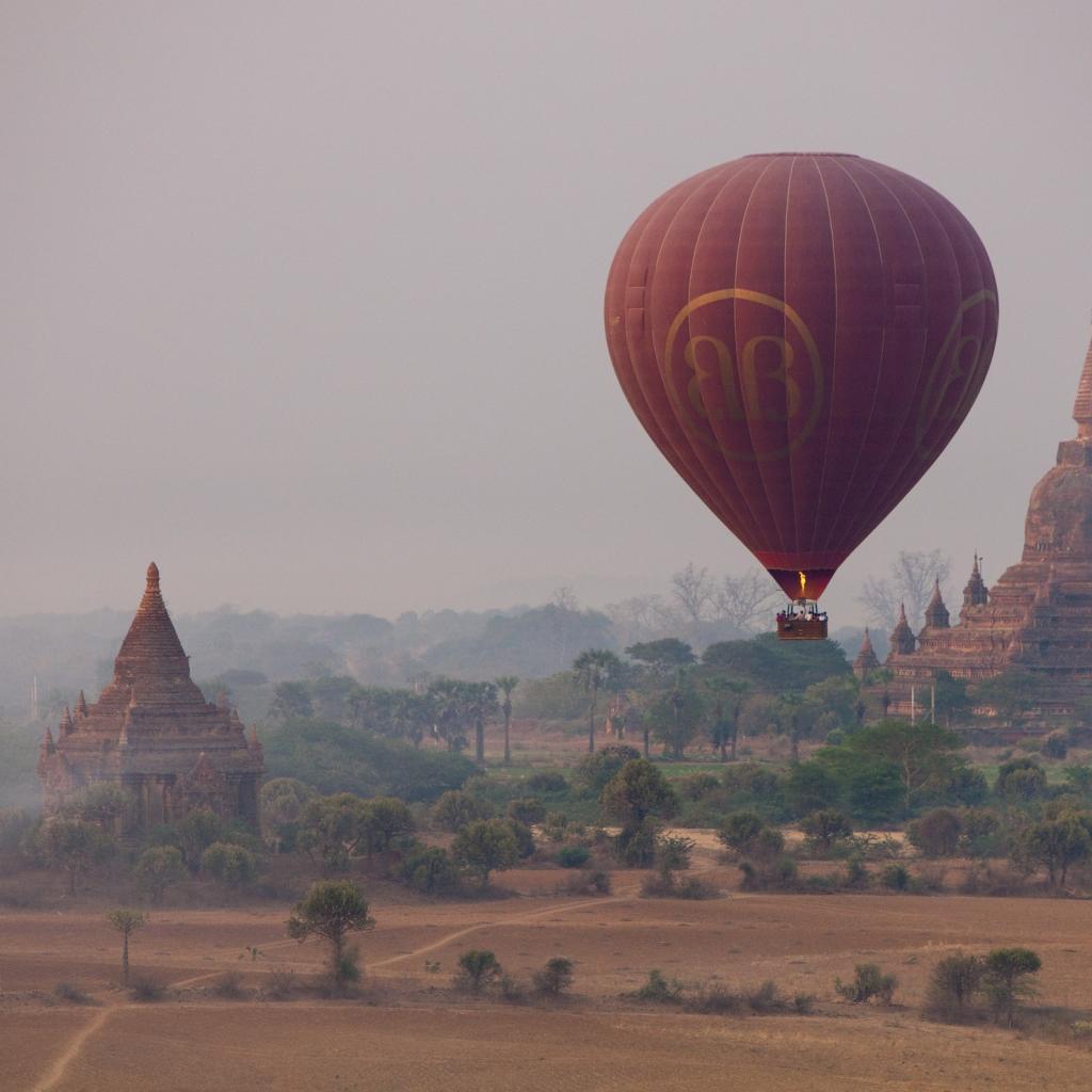 Wallpaper Balloon on a background of Buddhist temples