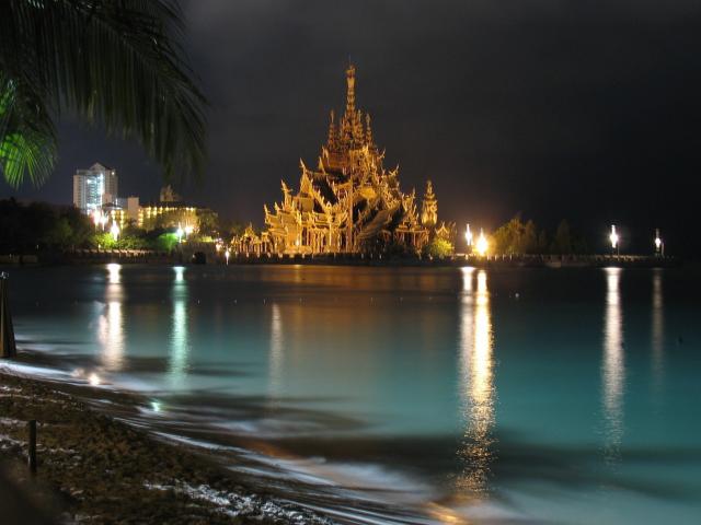 Wallpaper Buddhist temple behind the water