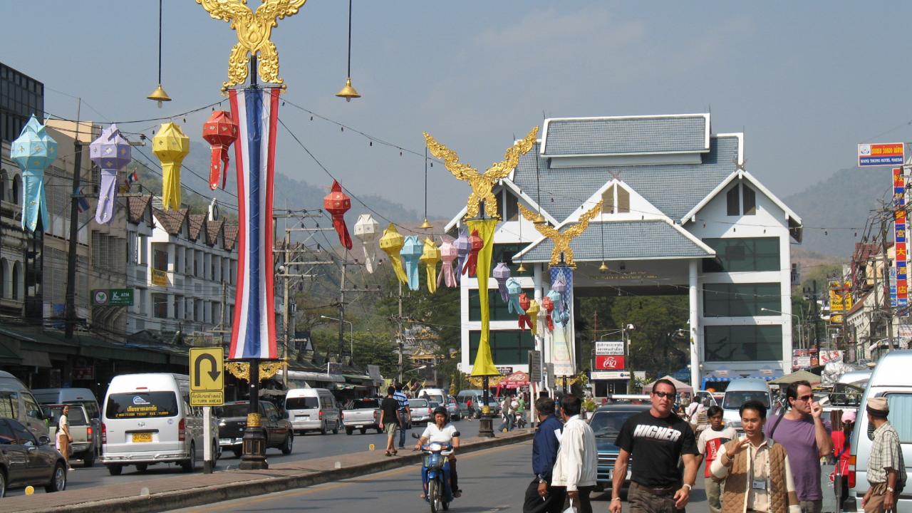 Wallpaper On a city street in the resort of Chiang Rai, Thailand