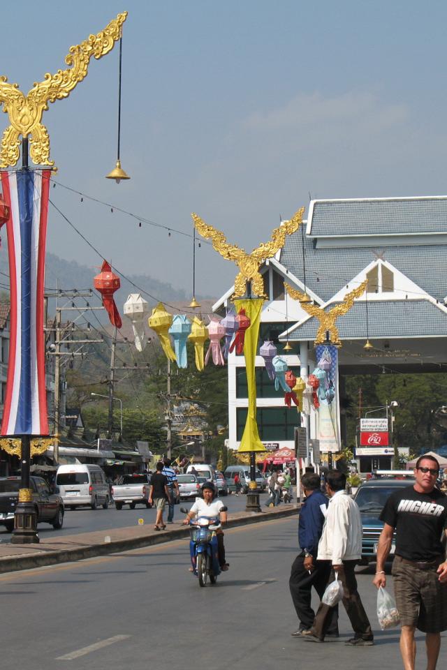 Wallpaper On a city street in the resort of Chiang Rai, Thailand