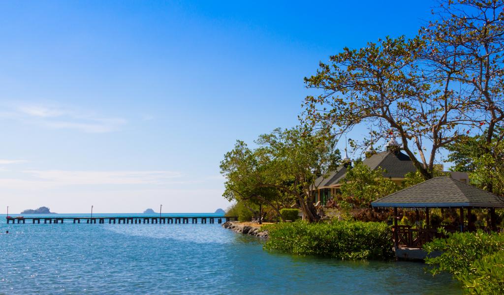 Wallpaper Hut near the water on the island of Koh Chang, Thailand