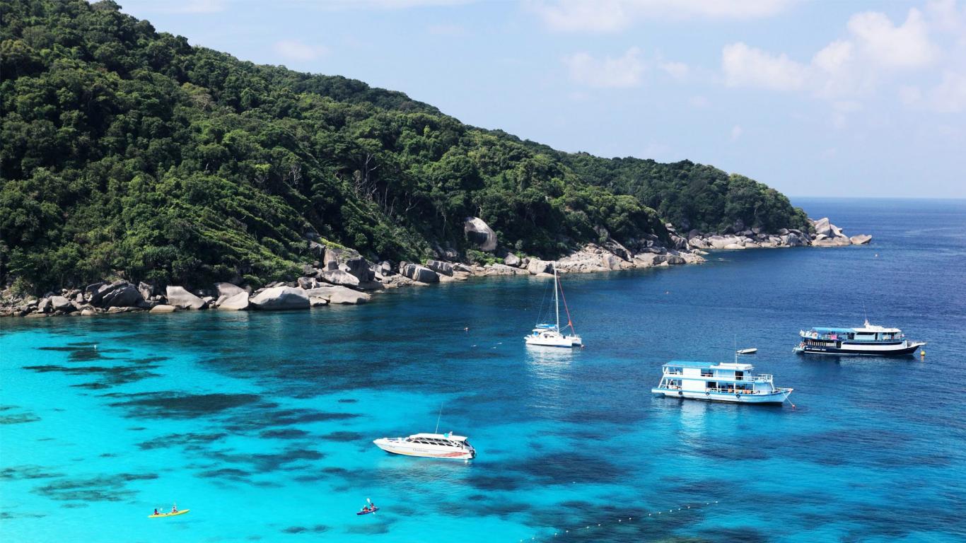 Wallpaper Boats in the bay on the island of Koh Chang, Thailand