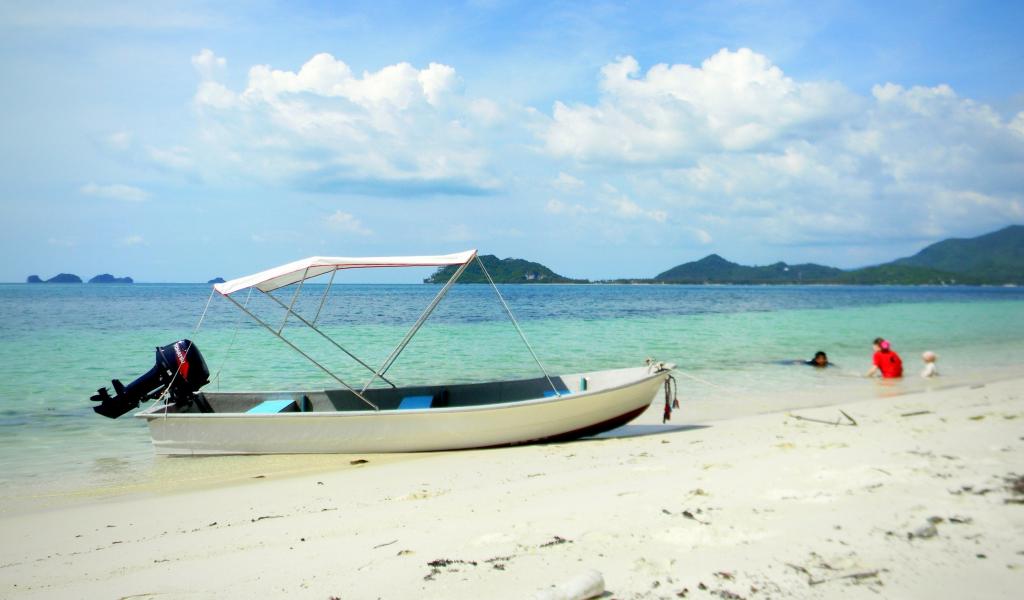 Wallpaper Boat on the beach on the island of Koh Tao, Thailand