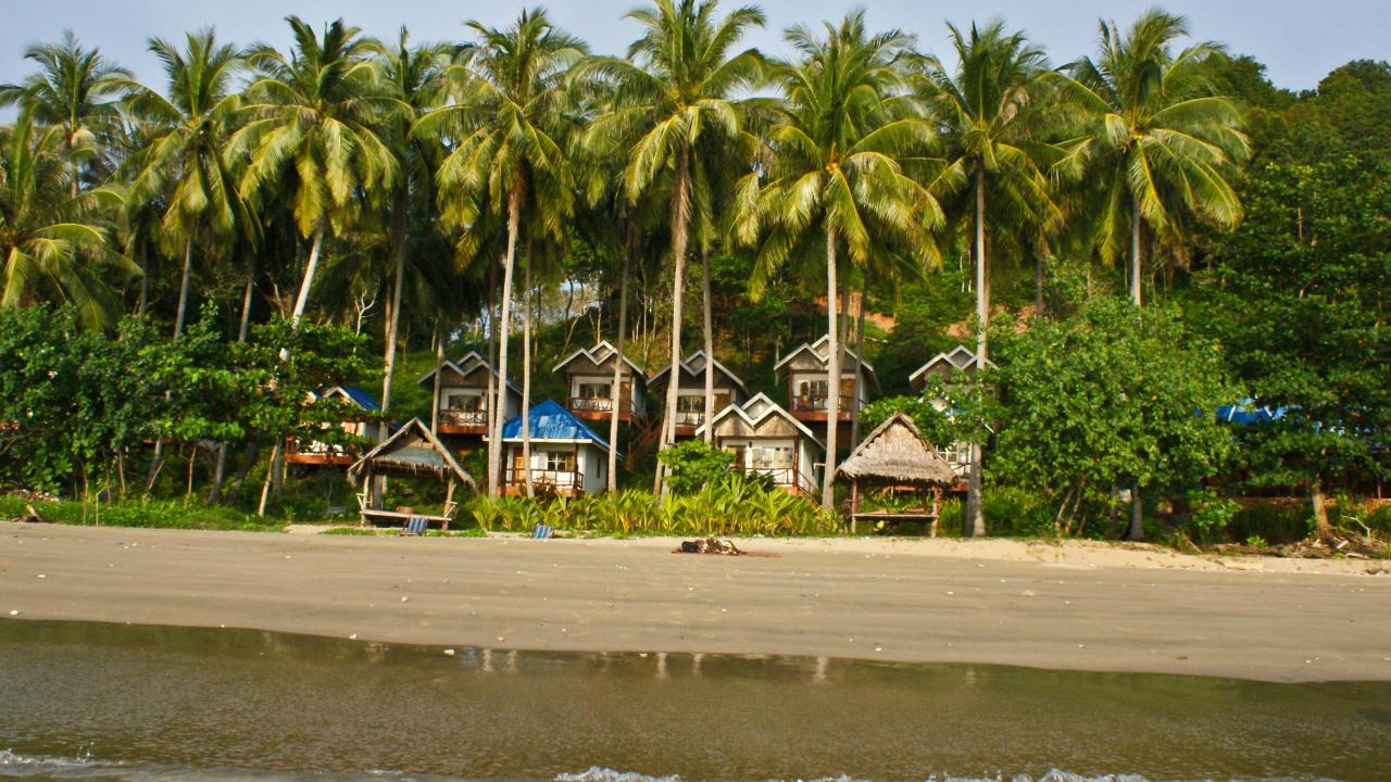 Wallpaper Huts of palm trees on the island of Koh Kood, Thailand