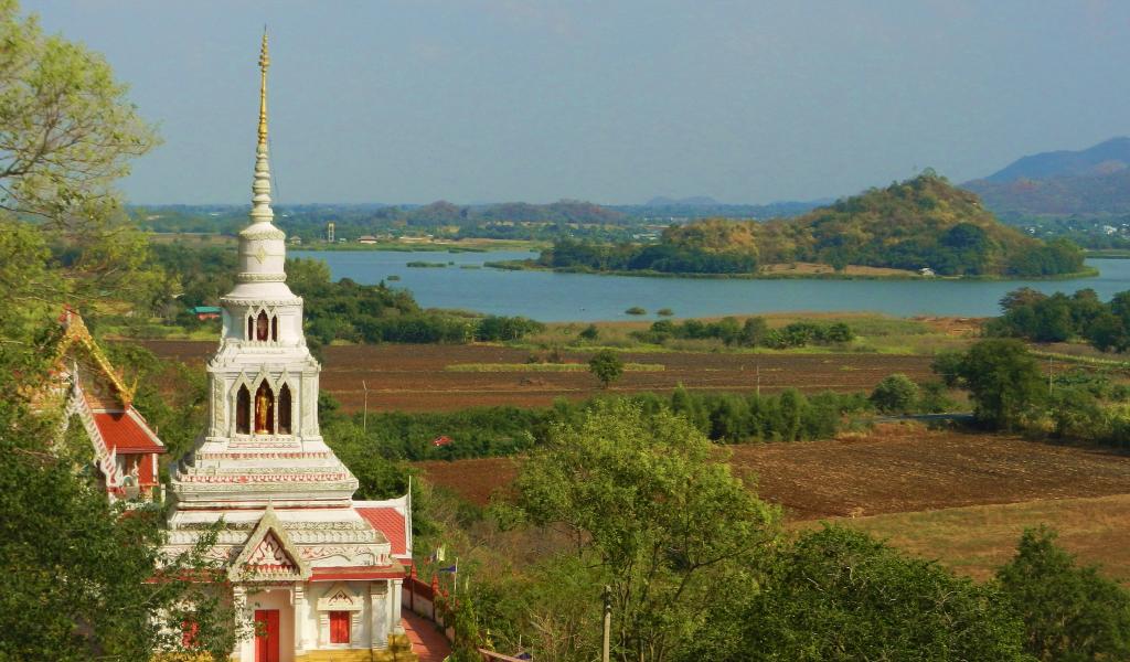 Wallpaper Temple on a background of lake at the resort Lopburi, Thailand